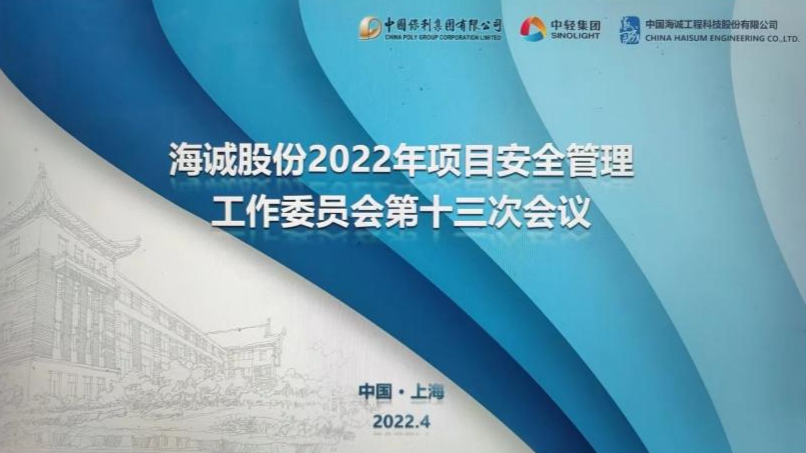 On the morning of April 21, the Company convened the 13th meeting of the Project Safety Working Committee in the form of videoconferencing to deliver and implement the spirits of Poly and Sinolight on safety and fight against COVID-19. During the meeting, participants watched educational videos about safety warnings and implemented the annual key safety work of 2022 and the experience exchange on field safety management. A total of 53 attendees, including Zhao Guoang, CPC Committee Secretary and Chairman of China Haisum, Chen Rongrong, the Deputy CPC Secretary and President of the Company, Chen Zhiming, Deputy President, and the principals and leaders of headquarters strategic operation center, Shanghai Business Departments and subsidiaries and relevant responsible persons of safety departments participated in this meeting, and it was presided over by Chen Zhiming.