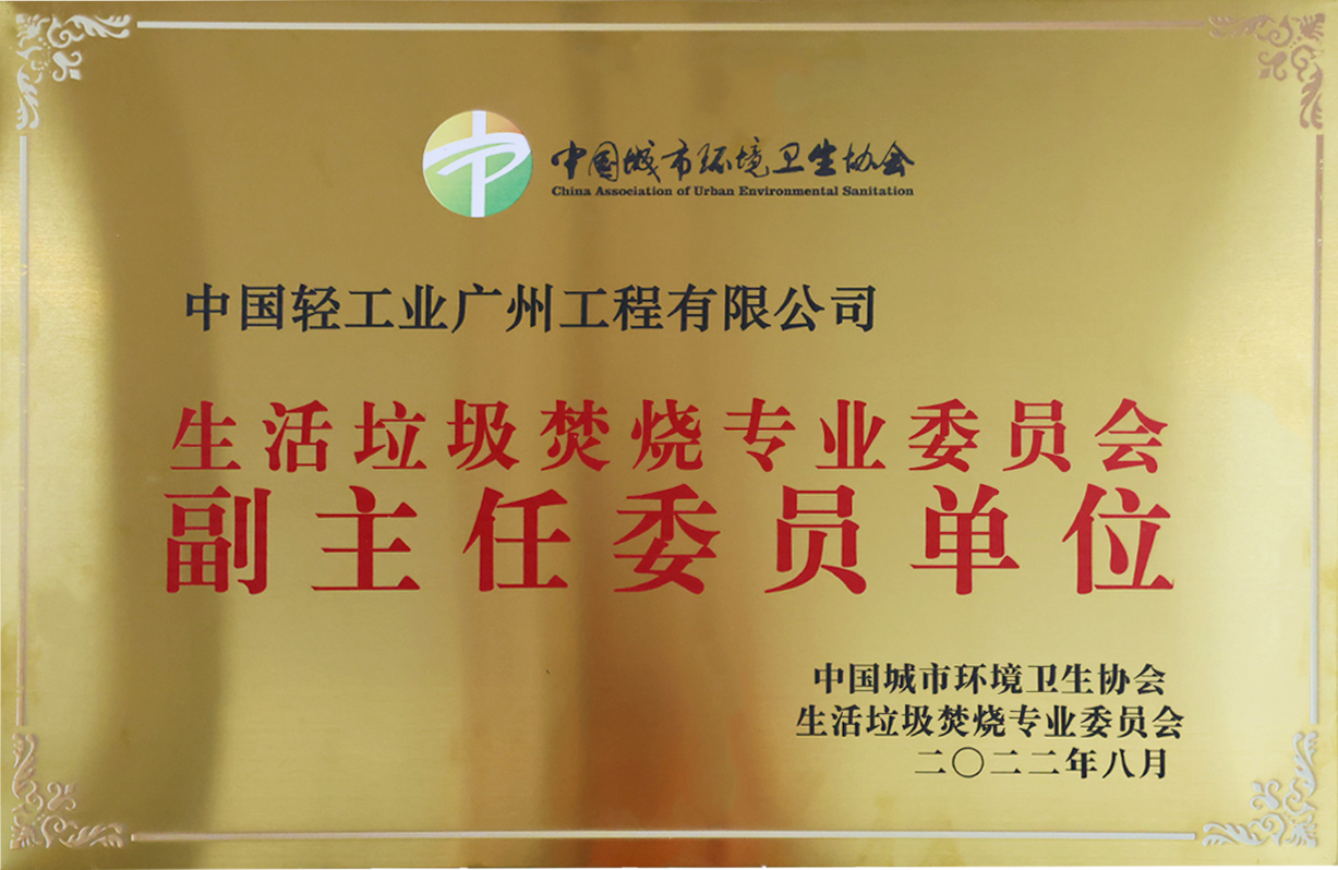 · 广州公司当选中国城市环境卫生协会生活垃圾焚烧专业委员会副主任委员单位