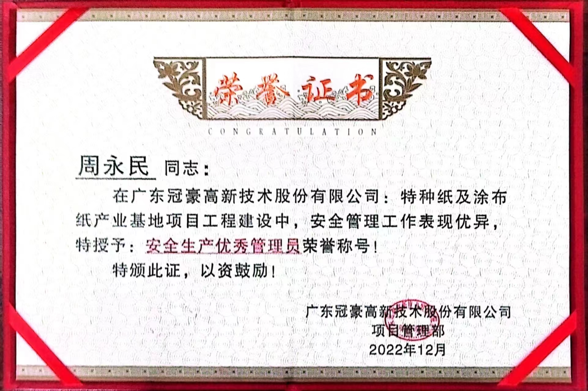 近期,中国海诚广州公司总承包的昌吉生活垃圾焚烧发电项目部获得业主颁发的2022年度安全生产先进集体荣誉称号,马斌、祁红兵、郭长彬获得2022年度安全生产先进个人荣誉称号。