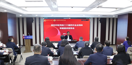 为深入学习贯彻党的二十届四中全会精神,切实把党员干部的思想和行动统一到党中央决策部署上来,12月4日下午,保利中轻党委副书记、总经理赵国昂到中国制浆造纸研究院(简称“中国造纸院”)宣讲党的二十届四中全会精神。报告会由中国造纸院党委书记、总经理田超主持。中国造纸院领导班子成员、总经理助理,各部门负责人、子分公司负责人、党支部书记,团委书记、统战代表、业务骨干等60余人以现场和视频形式参会。
