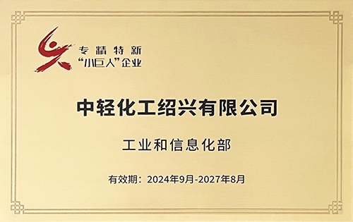 近日,中轻日化所属中轻化工绍兴有限公司(简称“中轻绍化”)成功获批国家工业和信息化部专精特新“小巨人”企业称号。这是对中轻绍化坚持走专业化、精细化、特色化、新颖化发展道路的充分肯定,标志着其在技术创新、市场竞争力和行业影响力方面迈上新台阶。