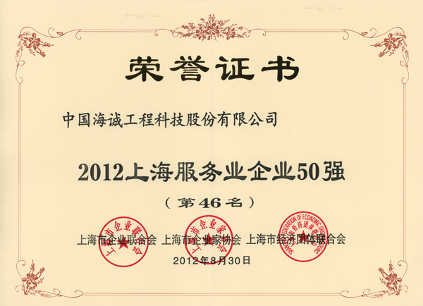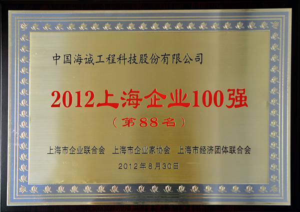 上海市企业联合会、上海市企业家协会、上海市经济团体联合会近日发布了“2012上海企业100强”榜单,中国海诚工程科技股份有限公司跻身其中,位列第88位。据悉,今年入围企业年营业收入门槛为30亿元。
