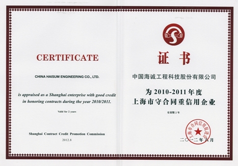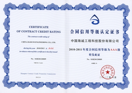 2010-2011年度上海市合同信用评比工作日前顺利结束。我公司合同信用等级再获“AAA级”并再次获得 “2010-2011年度上海市守合同重信用企业”证书。上海市合同信用评比工作由上海市合同信用会组织,第三方评估公司负责资信评估,两年一次。主要从合同管理制度的执行、合同管理人员资质、合同签约率、合同履约率、资产负债率及社会信誉等18项指标进行综合考评。我公司以9.57分(满分10分)获得AAA级?;窠泵ソ战诮夥湃毡ń泄?。