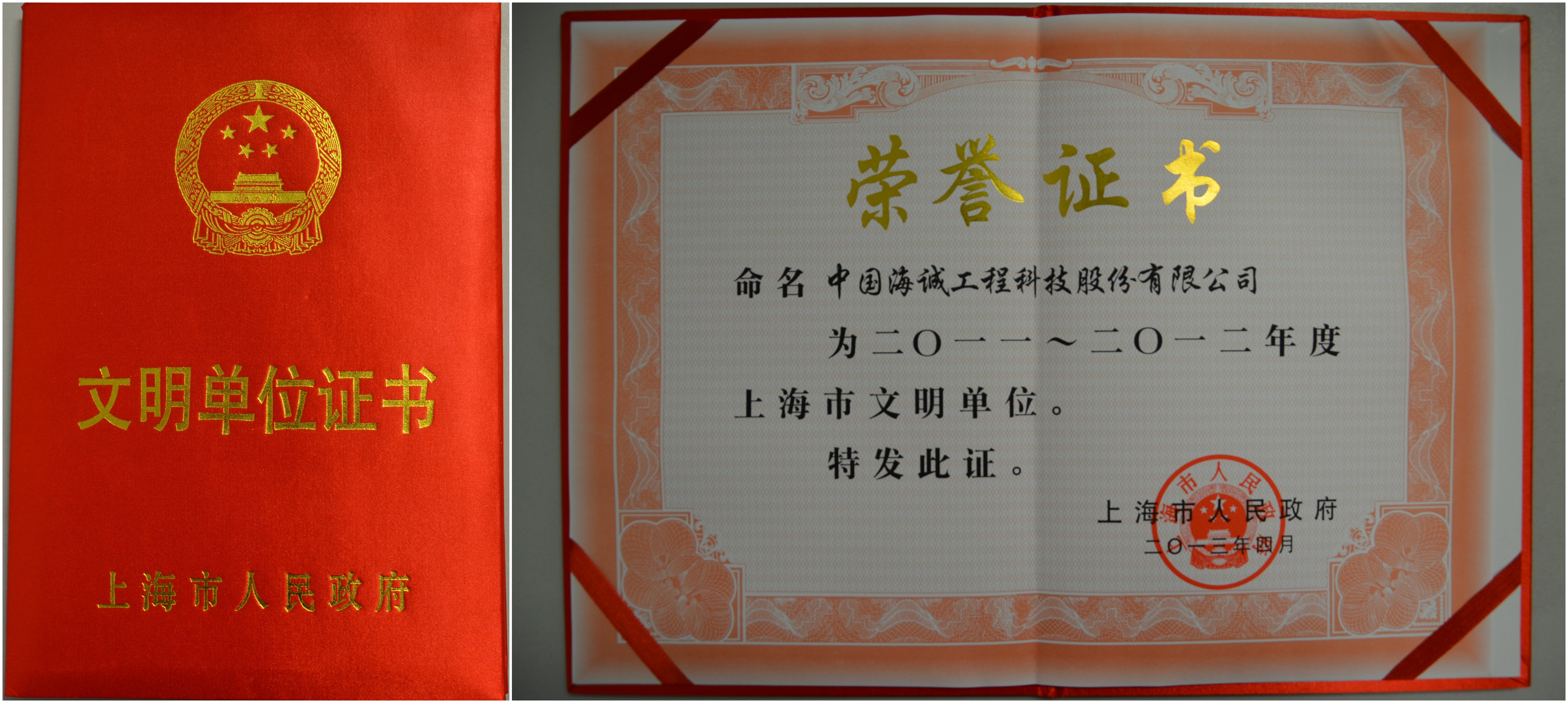 近日,2013年上海市精神文明建设工作会议在市委党校大礼堂隆重召开,上海市委书记韩正等领导出席?;嵘?,对“2011—2012年度(第十六届)上海市精神文明单位”进行表彰,中国海诚工程科技股份有限公司榜上有名。
