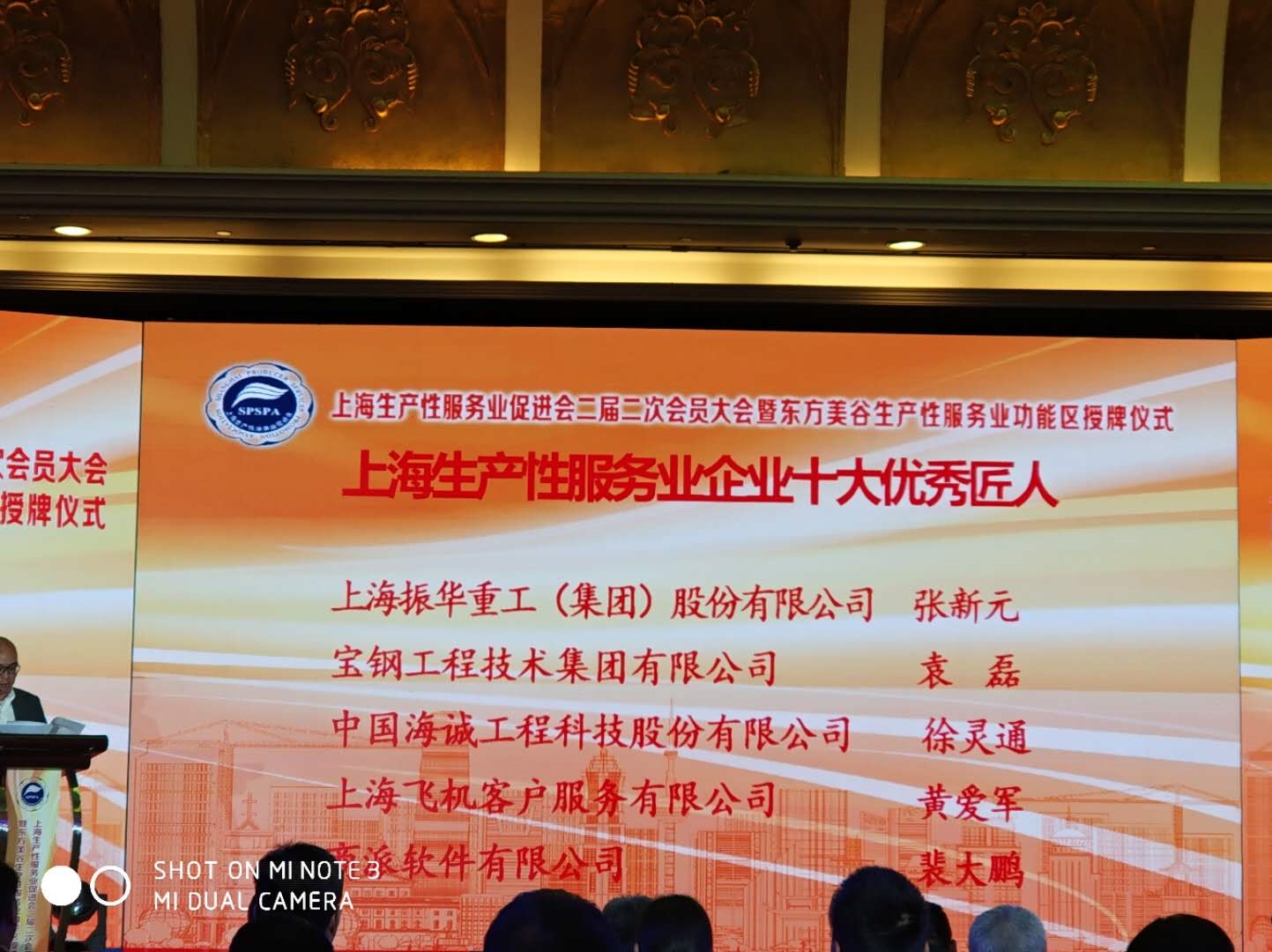 5月8日下午,上海生产性服务业促进会召开二届二次会员大会,会上授牌表彰了“上海十佳生产性服务业功能区示范园区”、“上海生产性服务业企业十大优秀匠人”、“上海生产性服务业企业十大先进匠人”。我公司结构专业总监徐灵通被授予“上海生产性服务业企业十大优秀匠人”称号。
