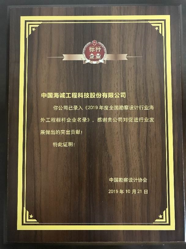 日前,中国勘察设计协会公布了“海外工程标杆企业”的评选结果,中国海诚股份荣获中国勘察设计行业“海外工程标杆企业”荣誉称号,荣誉被收录在《2019年度全国勘察设计行业海外工程标杆企业名录》。