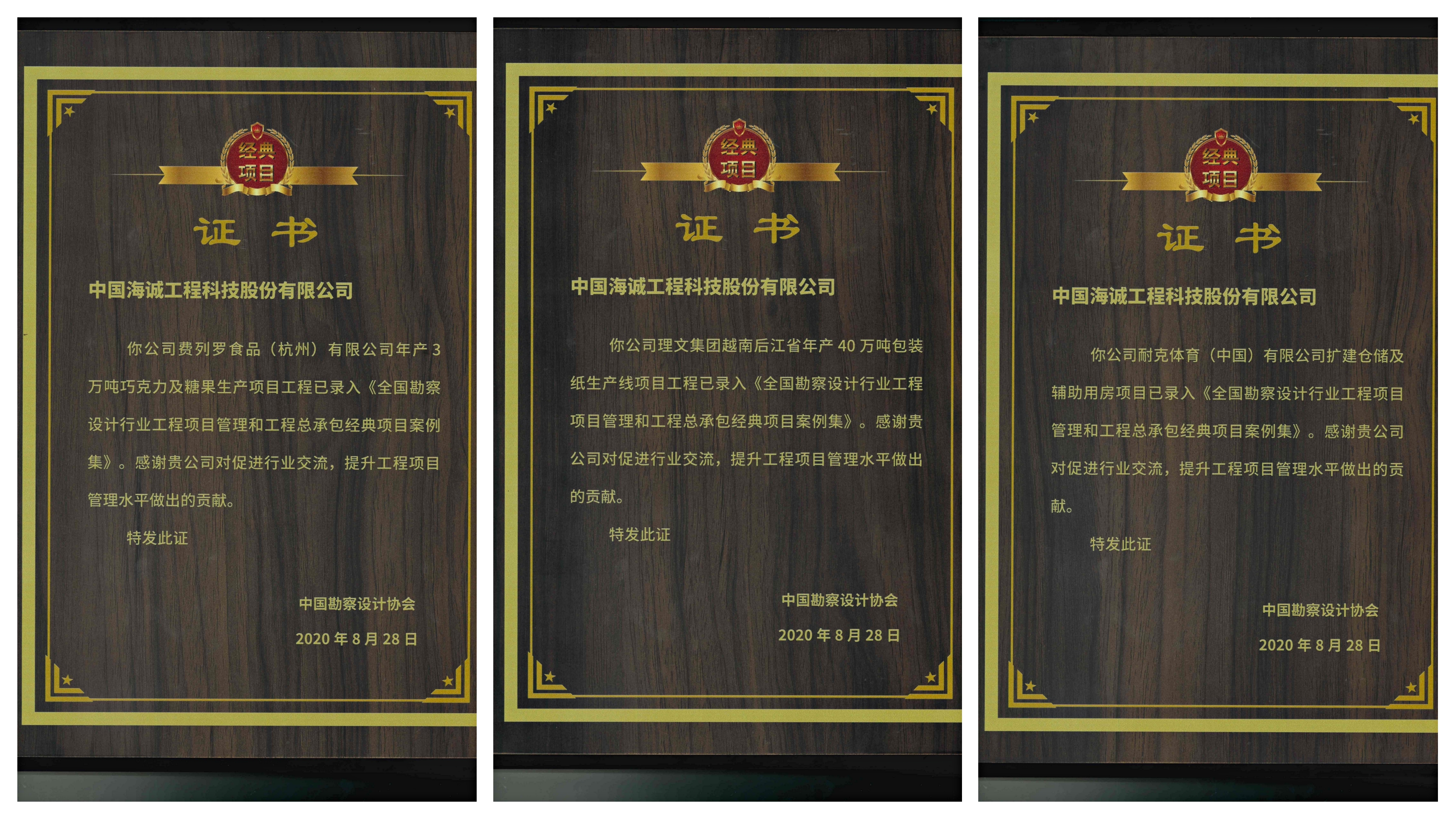 日前,第三届全国勘察设计行业工程项目管理大会暨中国勘察设计协会建设项目管理和工程总承包分会第四届会员大会和四届一次理事会在京召开。海诚股份党委书记、董事长赵国昂率队出席大会并当选总承包分会副会长?;嵋槠姥〕鋈辈焐杓菩幸的?8个工程总承包经典项目,我司承接的费列罗食品(杭州)有限公司年产3万吨巧克力及糖果生产项目、理文集团越南后江省年产40万吨包装纸生产线项目及耐克体育(中国)有限公司扩建仓储机辅助用房项目荣获经典项目荣誉称号,被录入《全国勘察设计行业工程项目管理和工程总承包经典项目案例集》。