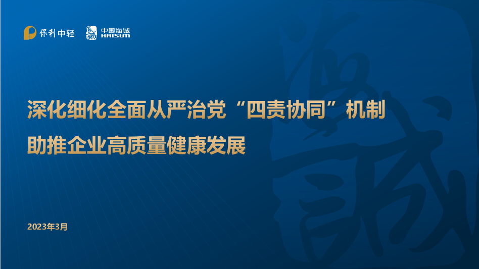 3月27日上午,中国海诚党委在上海总部召开2023年度第一次理论中心组(扩大)学习会,深入学习贯彻全面从严治党体系要求。保利中轻副总经理、中国海诚党委书记、董事长赵国昂主持会议。
