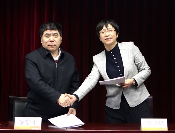 集团党委书记、董事长陈鄂生与皮革院党委书记杨承杰签订党风廉政建设责任书