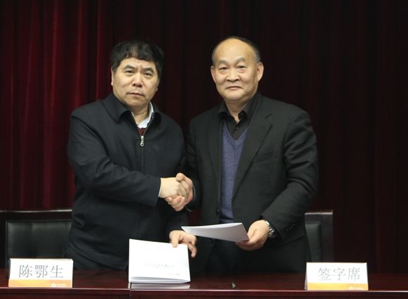 集团党委书记、董事长陈鄂生与长泰机械党委书记简泽丰签订党风廉政建设责任书