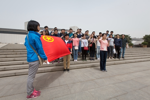 青年团员首先来到坐落于七七事变的爆发地—北京西南卢沟桥畔的宛平城内的中国人民抗日战争纪念馆参观。中国人民抗日战争纪念馆是全国唯一一座全面反映中国人民抗日战争历史的大型综合性专题纪念馆。在这里大家认真参观了以“伟大胜利 历史贡献”纪念中国人民抗日战争暨世界反法西斯战争胜利70周年主题展。展览通过大量的历史图片及珍贵的实物,借助景观、油画、雕塑、幻影成像、影视片等多样化的展示手段,全景式的向大家展示了全国各民族、各阶级、各党派、各社会团体、各界爱国人士、港澳台同胞和海外侨胞英勇抵抗日本军国主义侵略的光辉历史,让大家从多个角度不同的侧面了解抗日战争,更加得深切感受到全民族众志成城抵御外敌的决心和勇气,也更加深刻的体会到和平的来之不易。