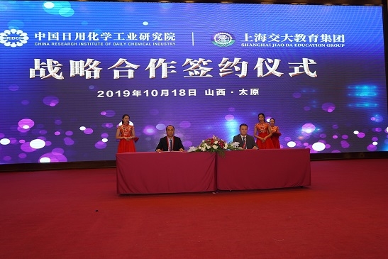 论坛期间,日化院还和上海交大教育集团签署战略合作仪式,双方将强强联合设立“中国日化高级研修学院”,面向中国日化行业开展高层次人才培训。这是双方认真贯彻落实近期国家发展改革委、教育部等6部门印发《国家产教融合建设试点实施方案》的具体举措,以促进高等教育和日化行业发展交叉渗透、相互融合,为日化行业高质量发展提供坚实的人才支撑。