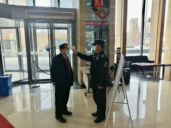 近日,随着复工复产潮的来临,疫情防控进入新阶段。2月3日,中轻集团总经理郭建全检查中轻大厦新冠病毒肺炎疫情防控工作。郭建全查看体温检测点和大厅情况,向值班人员详细了解大厦内环境消毒、联防联控等防范措施的具体内容和落实情况,向值班值守人员表示慰问,叮嘱大家值守的同时切实做好自我防护,以良好的身体和精神状态投入到疫情防控工作中去。