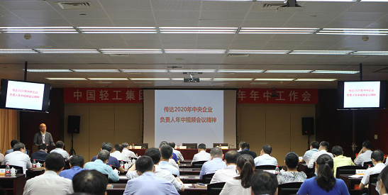 7月24日,中轻集团召开2020年年中工作会,总结上半年工作,分析当前形势,研究部署下半年重点任务。中轻集团董事长、党委书记张万顺传达国资委和保利集团有关会议精神并做总结讲话,总经理郭建全做了上半年工作报告?;嵋椴扇∈悠祷嵋榈男问?,保利集团战略投资中心张旻部长,中轻集团领导班子、总部中层以上领导干部、各二级子公司党政主要负责人等在主会场参加会议,各子公司在全国16个分会场共400余人参加会议。