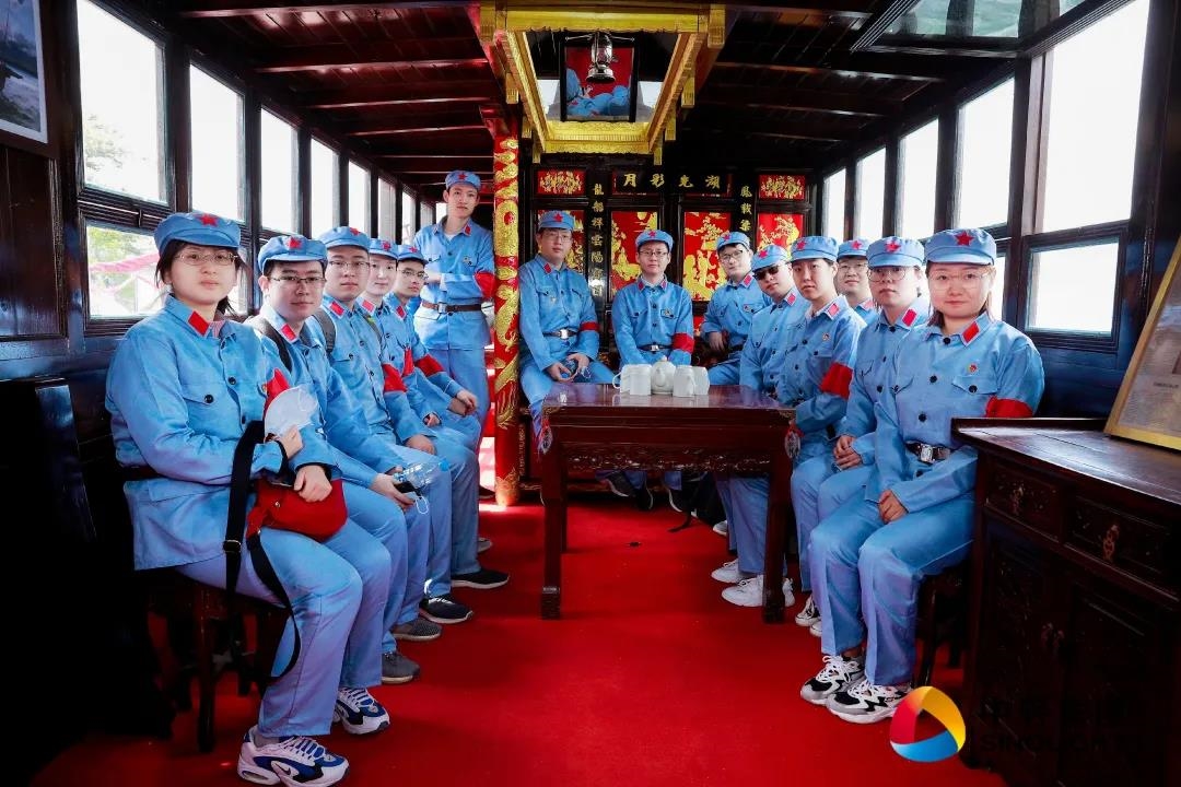青年们登上红船,重温了百年之前那艰苦又光辉的岁月,亲身体验了中国共产党建党的伟大历史时刻。中国共产党在这里诞生,中国革命在这里扬帆起航,从这里走向一个又一个胜利,大家低声喃语:“全世界无产者联合起来”,但内心汹涌澎湃。