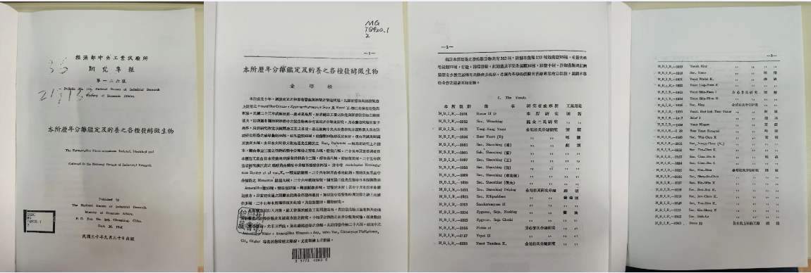 《本所历年分离鉴定及贮养之各种发酵微生物》(共15页,此为前四页)