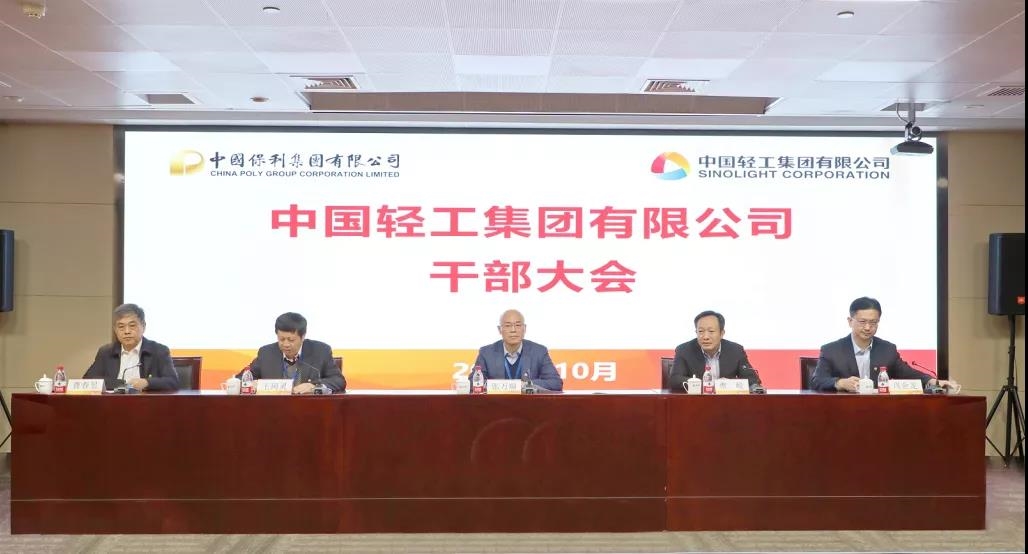 10月20日上午,中国轻工集团有限公司在京召开干部大会,宣布保利集团党委对保利中轻领导班子调整决定。保利集团党委常委、副总经理,保利中轻党委书记、董事长张万顺,保利集团人力资源管理中心副主任虞峻等领导同志出席会议。保利中轻党委副书记、总经理王珂灵主持会议?;嵘?,虞峻宣布保利集团关于保利中轻领导班子调整的决定:段赵清、肖金龙任保利中轻副总经理,曹春昱任保利中轻总工程师。