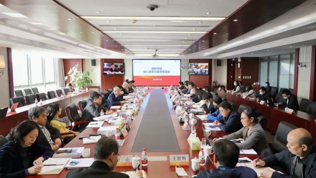 2021年11月19日上午,保利中轻召开核心竞争力专题研讨会?;嵋樘×吮@星岷诵木赫Φ餮星榭龌惚?,并进行交流研讨。保利集团党委常委、副总经理、保利中轻党委书记、董事长张万顺出席会议。会议由保利中轻党委副书记、董事、总经理王珂灵主持。