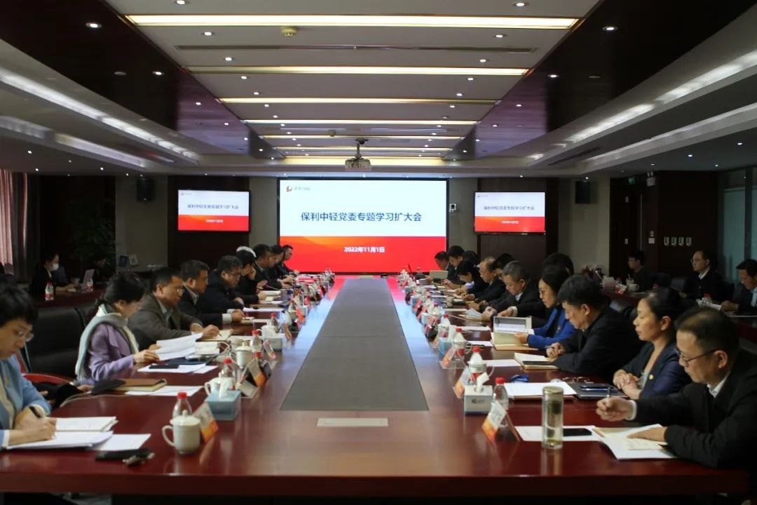 在全面学习贯彻党的二十大精神之际,全面启动部署明年全面预算工作之时,保利中轻党委按照保利集团党委要求原原本本学习的同时,11月1日下午组织召开党委专题学习扩大会,紧紧围绕“深入学习贯彻二十大精神,落实‘八维精益’理念,推进高质量发展”主题,结合企业实际进行集中学习研讨。保利中轻党委书记、董事长安胜杰主持会议并总结讲话。保利中轻领导班子成员、总经理助理、总部各部门负责人,二级子公司党政主要负责人分别以现场和视频形式参会。