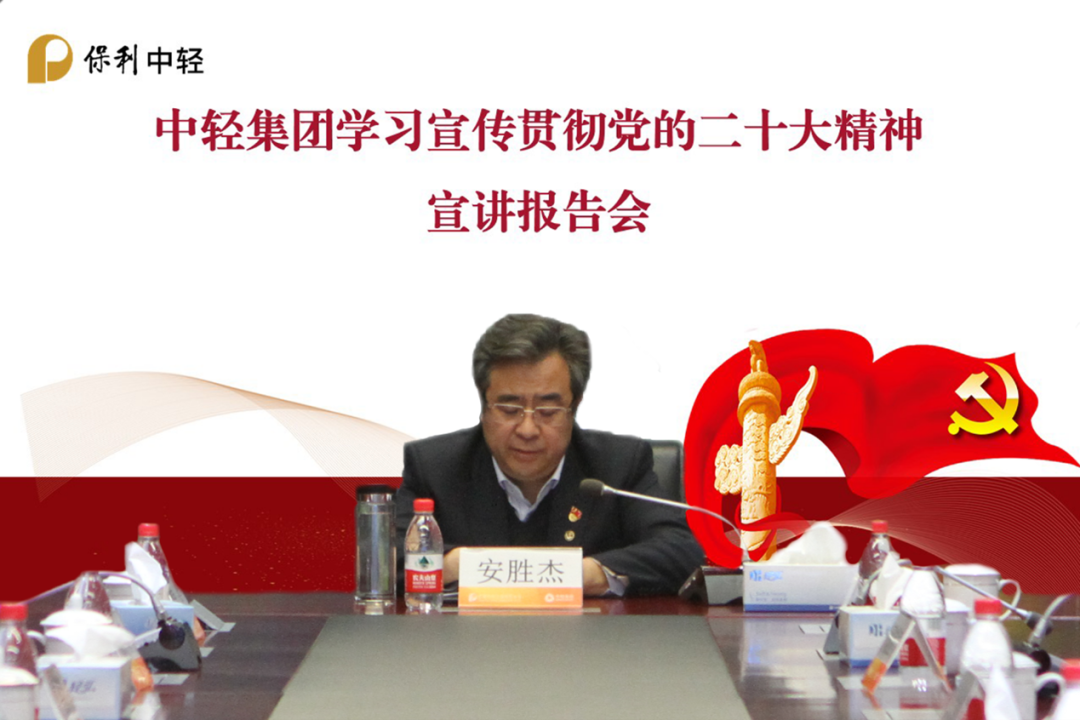 安胜杰从“全面准确学习领会党的二十大精神”“全面贯彻落实党的二十大精神,推动保利中轻加快建设世界一流科技企业”两个方面对深入学习贯彻党的二十大精神进行宣讲。