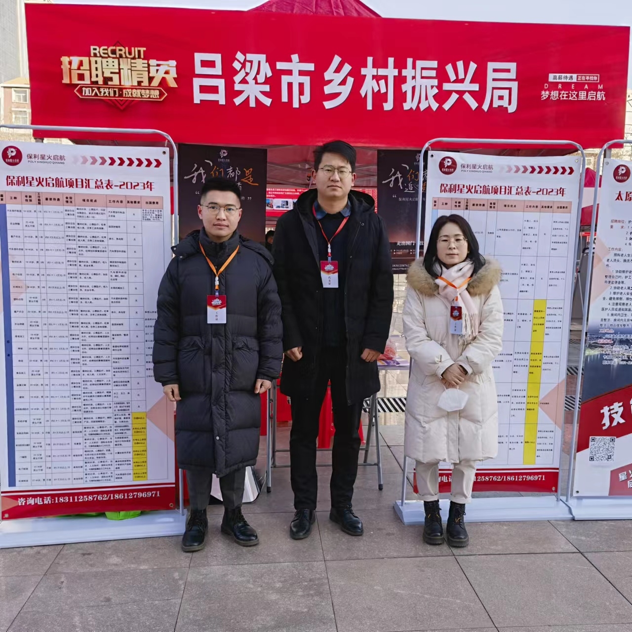 春风送真情,援助暖民心。为将更多境外优质岗位提供给山西省群众,助力当地群众就业增收,2023年2月,保利中轻所属中轻控股派遣的保利星火启航项目组参加了山西省人力资源和社会保障厅在山西各地陆续举办的“惠民生 促就业”—春风行动暨就业援助月系列招聘活动,分别赴山西省晋中市平遥县、吕梁市离石区、兴县、运城市平陆县、垣曲县等地现场招聘。