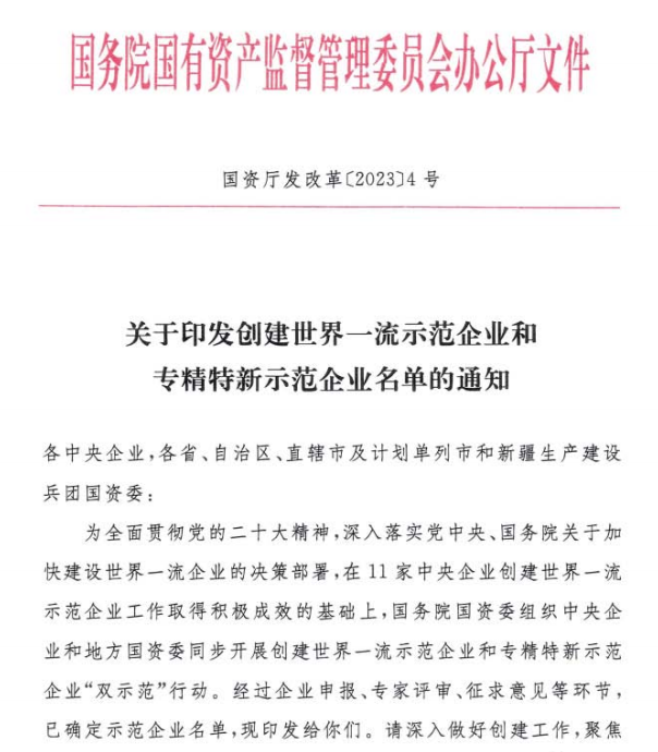 创建世界一流专精特新示范企业是国务院国资委贯彻党中央、国务院关于加快建设世界一流企业决策部署,深化创建示范、管理提升、价值创造、品牌引领“四个专项行动”的重要内容,旨在选取全国范围内专业突出、创新驱动、管理精益、特色明显的世界一流专精特新企业,发挥示范带动作用,推动国资国企改革专项落地。