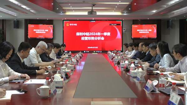4月19日,保利中轻召开2024年一季度经营形势分析会。保利中轻领导班子,总部部门负责人,子公司专职外部董事,子公司领导班子和有关部门负责同志通过现场和视频形式参会?;嵋橛傻澄笔榧恰⒆芫硗蹒媪橹鞒?。