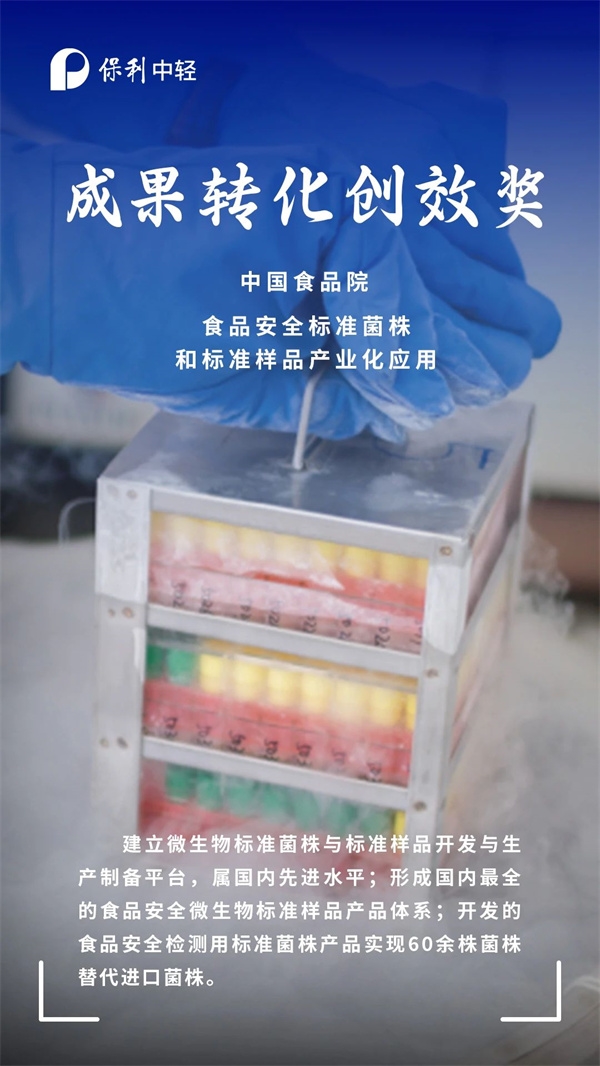 近日,保利集团第一届“青创杯”创新创效大赛结果公布。中国食品发酵工业研究院(简称“中国食品院”)开发的“食品安全标准菌株和标准样品产业化应用”项目获成果转化创效奖,中国海诚开发的“退役磷酸铁锂电池高效回收及高性能磷酸(锰)铁锂正极材料制备”项目获科技创新创效奖。此次获奖再次彰显保利中轻在科技创新工作方面的显著成效??炖次Ч?,一起为他们打call!