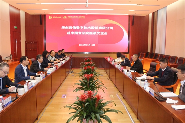 11月14日,华创云信数字技术股份有限公司(以下简称“华创云信”)董事长陶永泽一行赴中国食品发酵工业研究院(以下简称“中国食品院”)座谈交流。保利集团总经理助理,保利中轻党委书记、董事长安胜杰;保利中轻副总经理、中国食品院董事长肖丹参加座谈?;嵋橛芍泄称吩旱澄榧?、总经理郭新光主持。