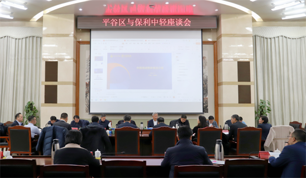 12月2日,保利集团总经理助理,保利中轻党委书记、董事长安胜杰一行与北京市平谷区委书记唐海龙,区委副书记、区长狄涛等座谈交流。保利中轻副总经理,中国海诚党委书记、董事长赵国昂;保利中轻副总经理张曦,中国海诚、中轻长泰相关负责人,平谷区政府党组成员彭石,区政府相关部门负责人参加座谈。