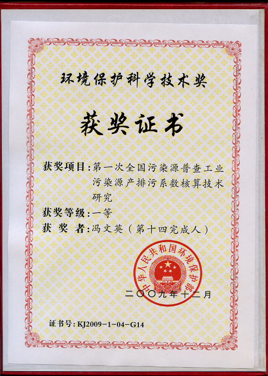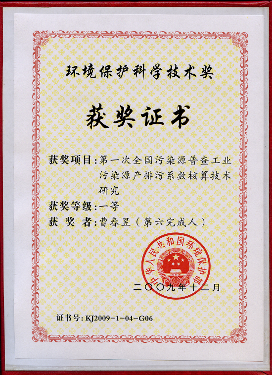 中国制浆造纸研究院教授级高工曹春昱和高工冯文英参与的《第一次全国污染源普查工业污染源产排污系数核算技术研究》项目获国家环保部2009年度环境?;た蒲Ъ际踅币坏冉?。