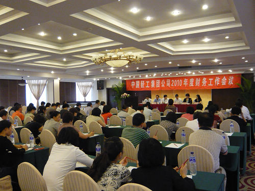 为明确集团公司进一步加强财务监管工作的基本思路,加强集团公司财务集中管理力度,全面做好集团公司风险管控等项工作,及时转变观念,树立金融战略支撑企业发展意识,集团公司于9月26日至28日在上海召开了2010年度财务工作会议。集团公司董事长陈鄂生、总经理俞海星、董事王汉全、总会计师郭建全等集团领导与会;中国总会计师协会轻工分会副会长鲁培廉、国资委综合局处长尹凌青到会;集团总部财务部以及所属二级及二级以下重要子企业财务负责人和相关人员,规划发展部、企业管理部负责人和相关人员,共计80余人到会参加。
