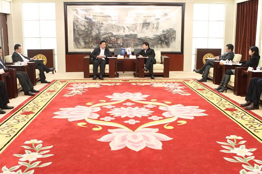 2011年4月13日上午,陈鄂生董事长在集团总部贵宾室会见了来访的江苏省徐州市委常委、新沂市委书记陈德荣、副市长娄可亮等一行。