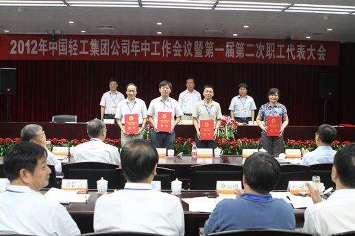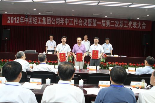 中国轻工集团公司上半年组织了2012年度科学技术奖和2012年度的科技创新基金项目的征集和评审工作。日前,科学技术奖颁奖仪式及科技创新基金项目任务合同书签订仪式在京举行,集团公司领导、集团公司各部门负责人、相关项目单位主要负责人出席了仪式。