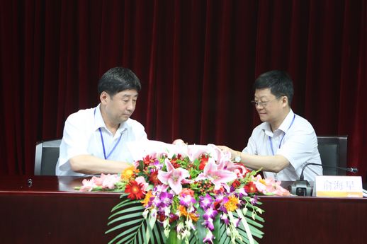 集团公司总经理俞海星与食品发酵院院长蔡木易签订任务合同书