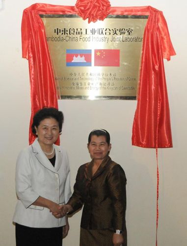 2012年12月7日,国务委员刘延东与柬埔寨王国副首相梅森安在柬埔寨首都金边共同为“中柬食品工业联合实验室”揭牌。教育部部长袁贵仁、科技部党组书记王志刚、国务院副秘书长江小涓、外交部副部长宋涛及柬埔寨国务委员会、工业矿产及能源部、教育部、外交部等部门高级官员出席揭牌仪式。集团公司陈鄂生董事长出席仪式并陪同两国领导人参观了实验室。集团公司所属中国食品发酵工业研究院院长蔡木易、中国海诚股份南宁公司董事长王毅军等中柬双方项目执行人员参加了典礼。