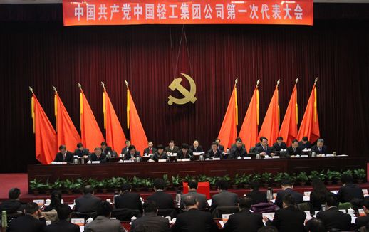 经国资委党委批准,2013年1月16日上午,中国共产党中国轻工集团公司第一次代表大会在京隆重召开。国资委纪委正局级纪律检查委员、监察专员李黎、国资委监事会17办副主任(正局级)王克勤、国资委党建工作局副处长张承新等上级领导出席大会并在主席台就座。大会主席团由陈鄂生、俞海星等十八名同志组成。集团公司总经理俞海星主持大会。本次大会的正式代表共141名,实际到会代表131名。代表中既有各级管理干部,也有工作、生产一线的员工和女党员以及专业技术人员和先模人物,还有离退休老党员代表。
