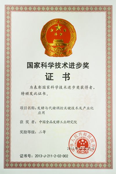 在刚刚闭幕的2013年度国家科技奖励大会上,中国食品发酵工业研究院参加完成的“发酵与代谢调控关键技术及产业化应用”成果,荣获2013年度国家科技进步二等奖(张五九副院长在获奖人员中排名第二)。
