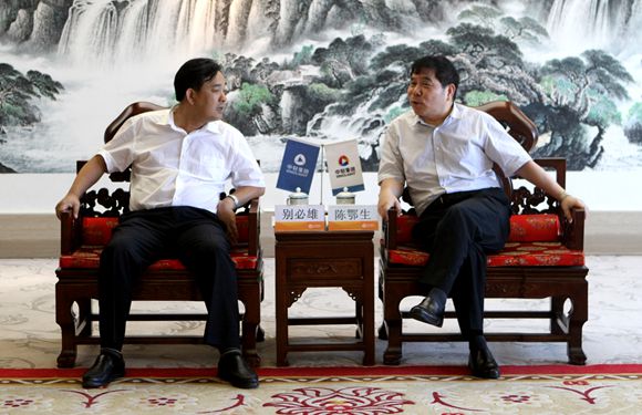 8月8日,中轻集团党委书记、董事长陈鄂生在中轻大厦会见了荆门市委书记别必雄一行。