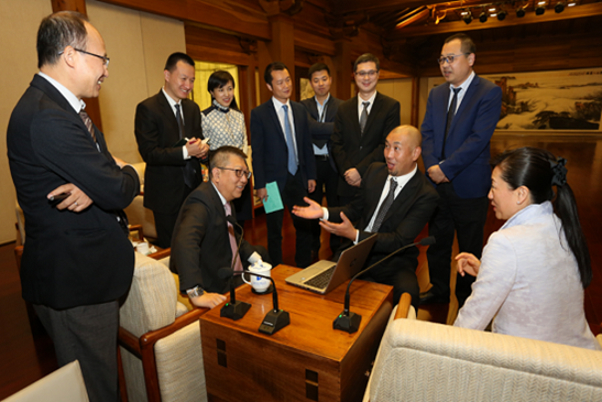 10月23日上午,集团公司总经理张振高、副总经理张曦在北京新保利大厦会见了来访的日本索尼集团董事局首席高级顾问姜红一行,双方就未来在影院放映、文化产业发展、博物馆及展览展示等领域的进一步合作进行了商谈。