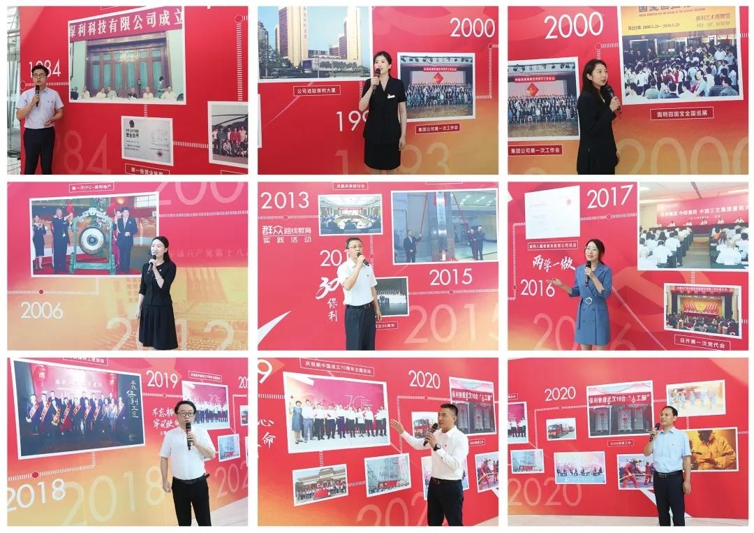 在国歌奏唱声中,活动拉开帷幕。来自不同业务板块的9名党员接力讲述保利故事,在他们的讲述下,集团公司36年发展史徐徐展开。
