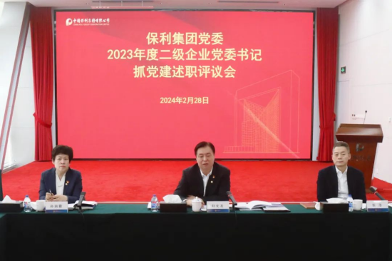 2月28日,保利集团党委在京召开2023年度二级企业党委书记党建工作述职会议暨2024年度党建责任书签署仪式,集团公司党委书记、董事长刘化龙参加会议并讲话,党委常委、纪委书记孙丽霞参加会议,会议由党委副书记张浩主持。